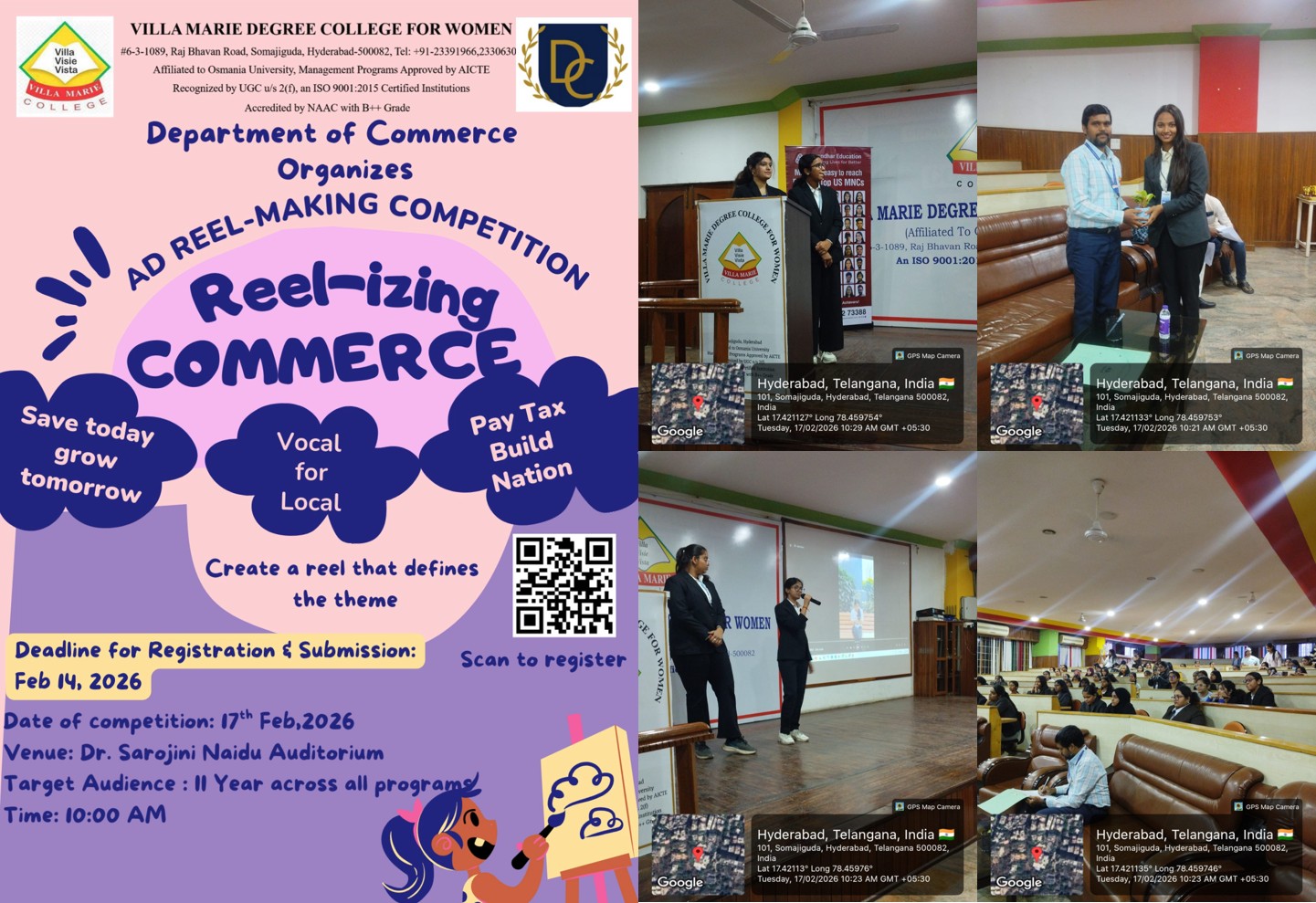 - 17th February 2026, Department of Commerce organized the Ad Reel-Making Competition “Reel-izing Commerce,” encouraging students to showcase their creativity by creating reels based on the given themes.