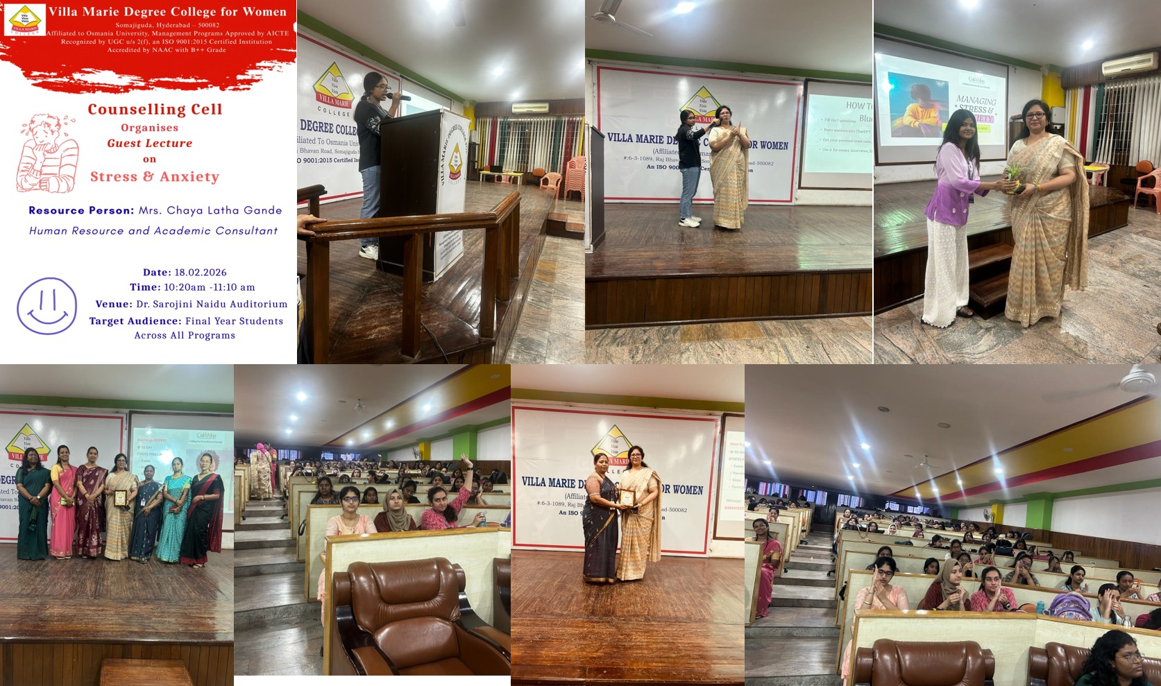 - 18th February 2026, Counselling Cell organized a guest lecture on Stress & Anxiety, focusing on mental well-being, stress management, and emotional resilience.