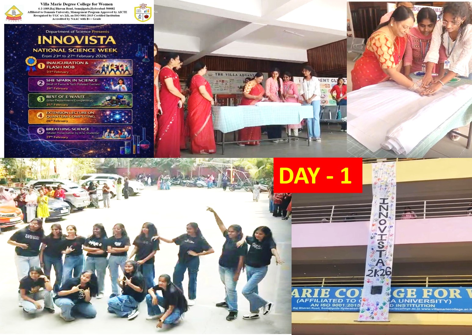 - 23rd February 2026, Day -1 Department of Science inaugurated Innovista 2K26 – National Science Week with a formal ceremony followed by an energetic flash mob, marking a vibrant and inspiring beginning to the week-long celebrations.