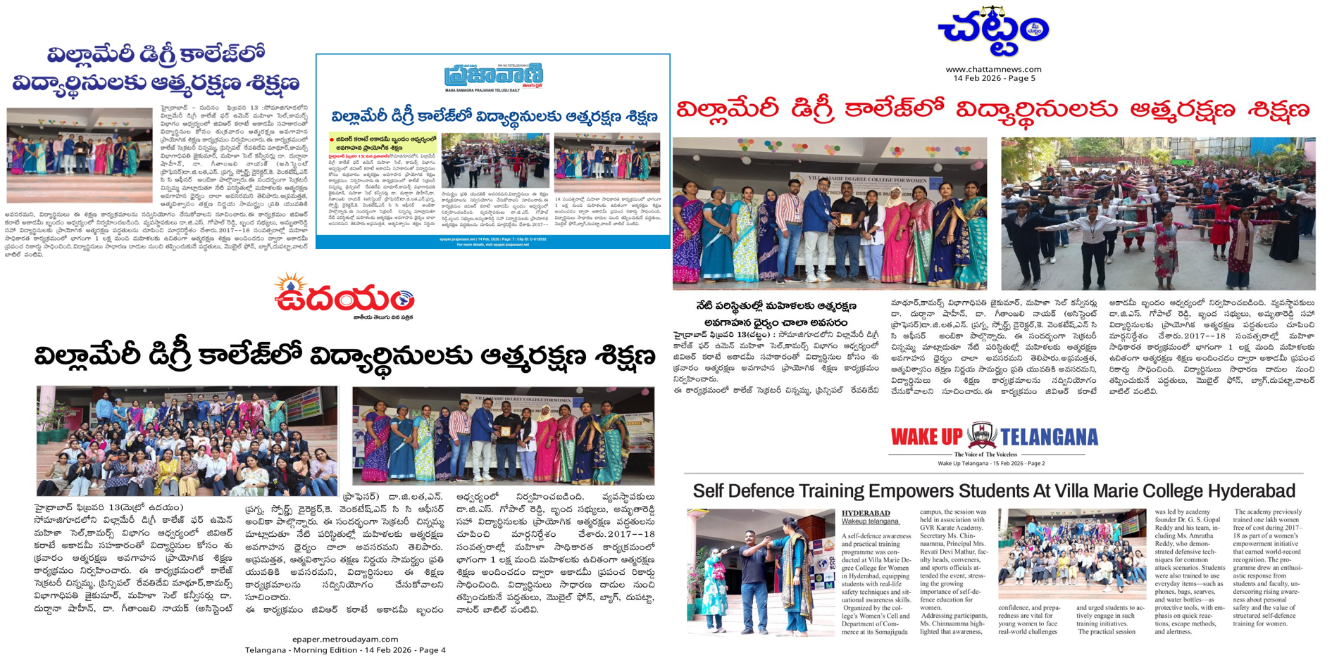 - 14th February 2026, Women’s Cell, in association with the Department of Commerce, organized a Self-Defence Training session on 13 February 2026, which received wide coverage in leading Telugu and English newspapers.