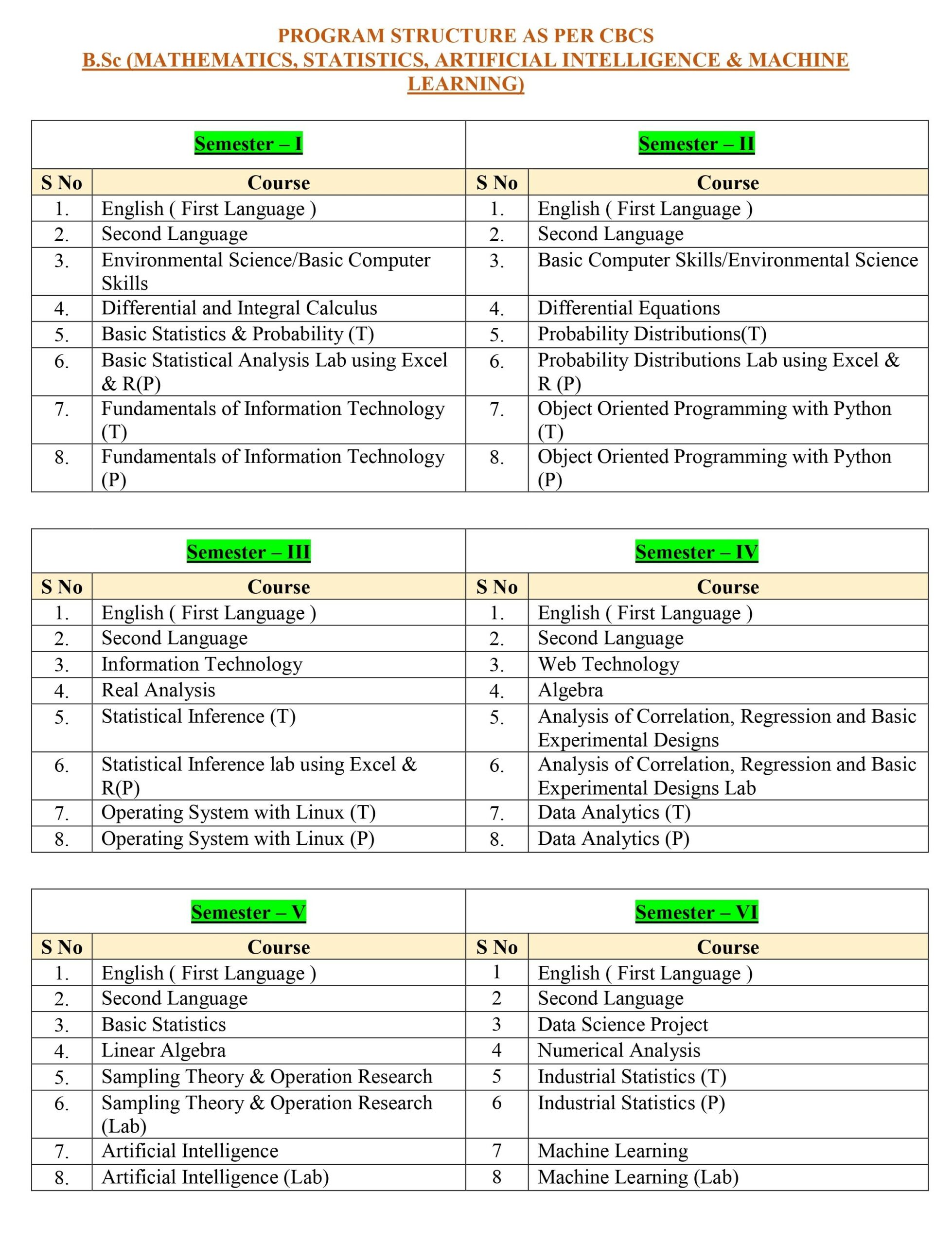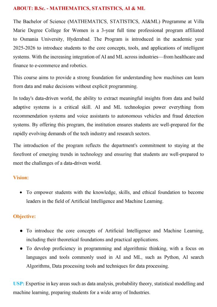Bachelor of Science (Maths, Stats and AL & ML)