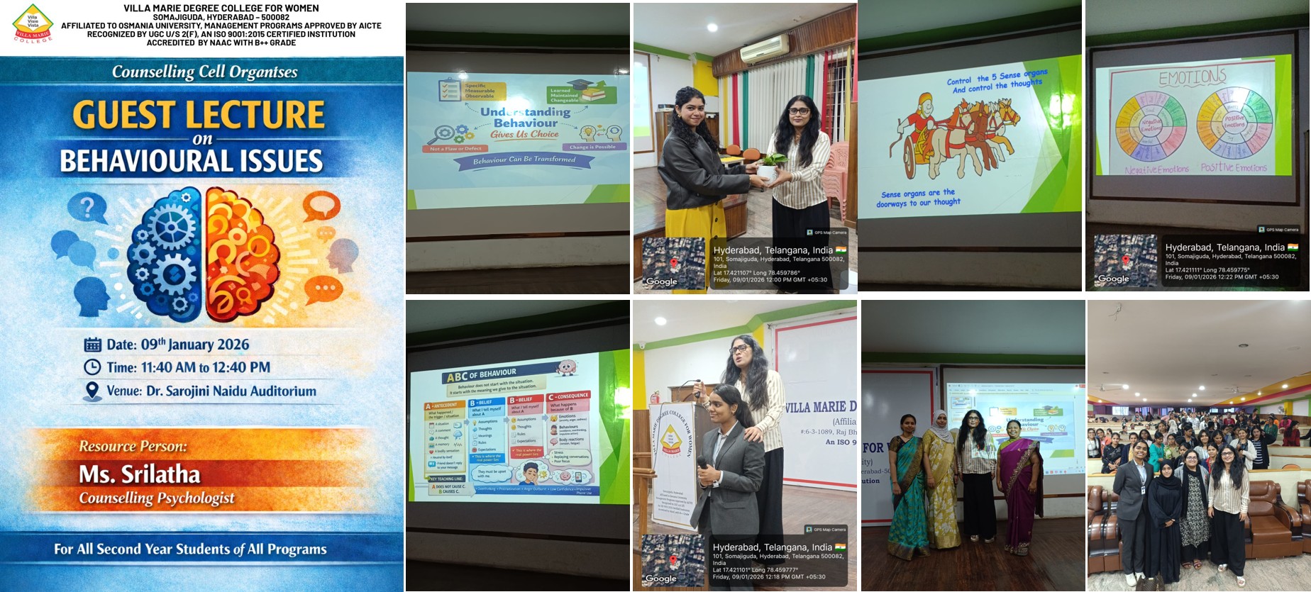 - 09th January 2026, Counselling Cell organized a Guest Lecture on “Behavioural Issues” for all Second Year students across all programs