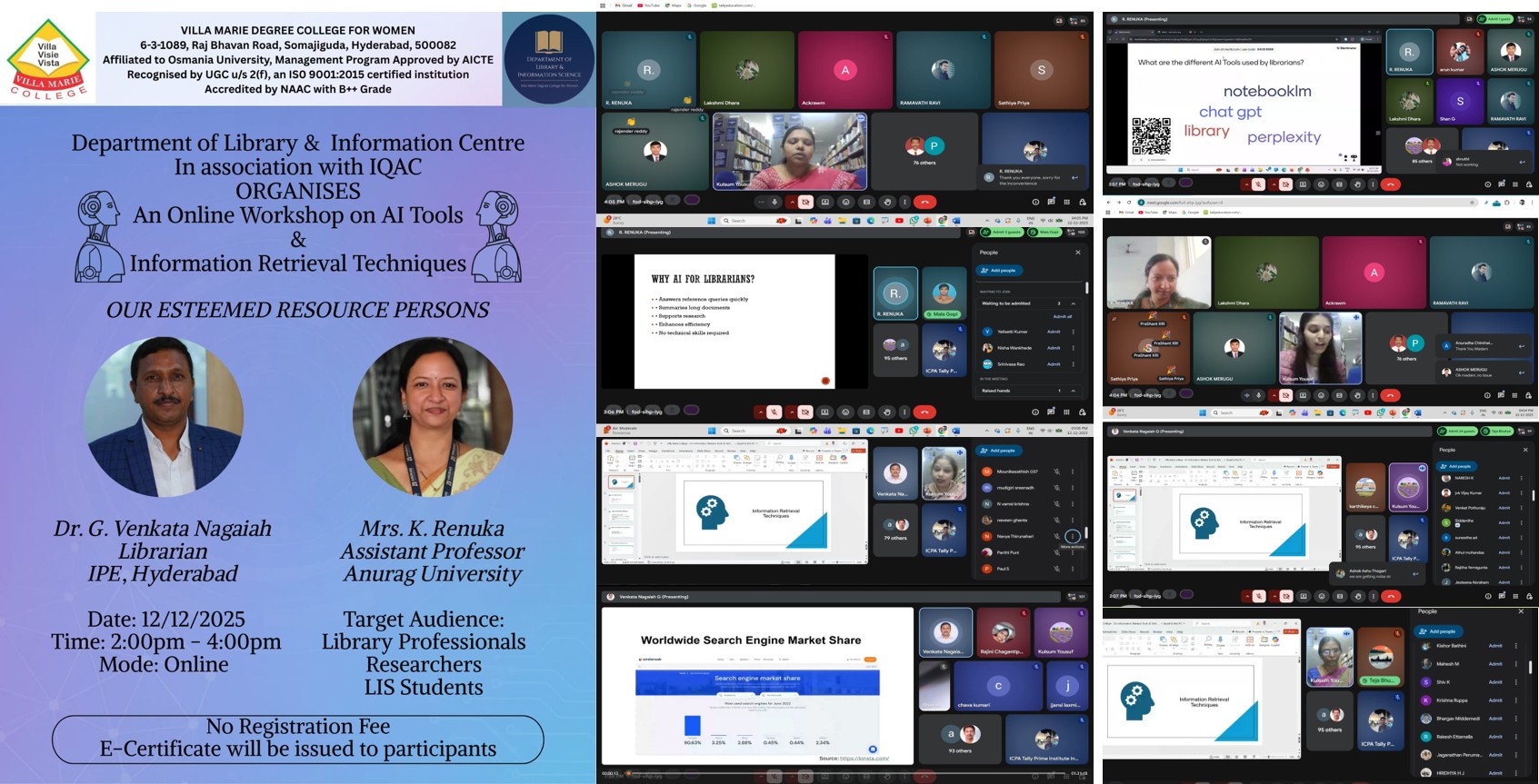 - 12th December 2025, Department of Library & Information Centre in association with IQAC organised an Online Workshop on AI Tools & Information Retrieval Techniques